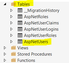 用户的信息存储在AspNetUsers表中。让我们看看这个表在这里: